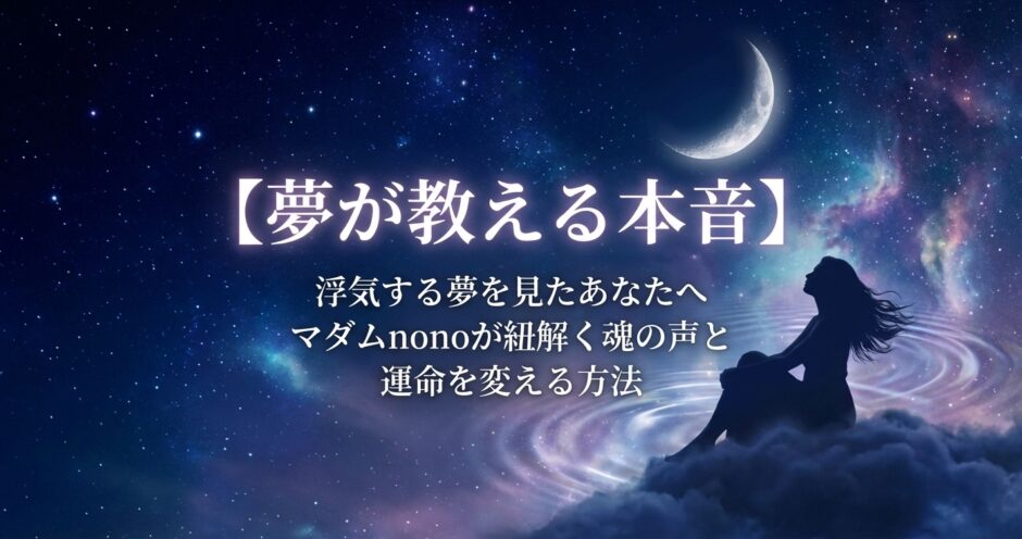 実は、その夢は「悪いこと」ではありません。マダムnonoは長年の鑑定経験から、浮気する夢はあなたの心の奥底に眠る「本当の気持ち」を映し出す鏡であり、魂が成長を求めているサインだと解釈しています。心理学者ユングも、夢は無意識からの大切なメッセージだと説いていますね。